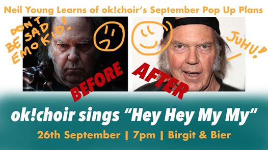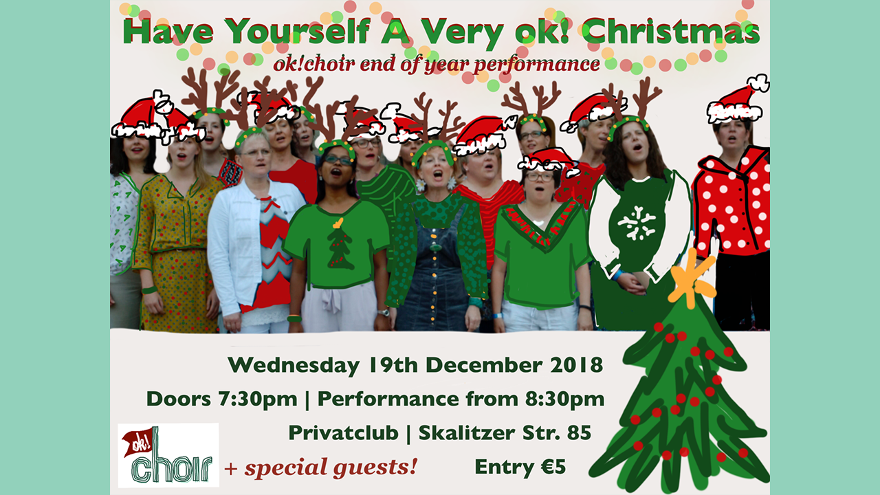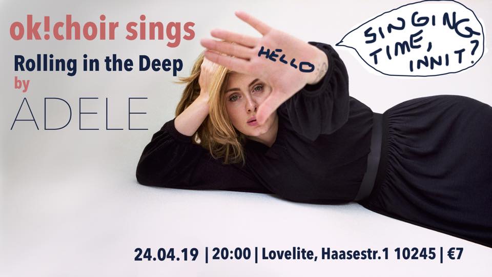 ok!choir Pop Up nights happen on the last Wednesday of each month, and are open for anyone to drop in and attend. You don’t have to sign up or do any kind of preparation, just come along! On Pop Up nights the choir in attendance learns a whole song from beginning to end by ear, which means without sheet music. It is perfect for beginner singers to come and try being in a choir, or for experienced singers to have a fun, commitment-free, social sing with friends. Each Pop Up night concludes with a low-key performance, which might sometimes be as simple as making a video of ourselves, or might involve a sneaky surprise performance at a U-bahn station, in a bar, or in the street. Visit our news section to see when and where the next Pop Up is happening.