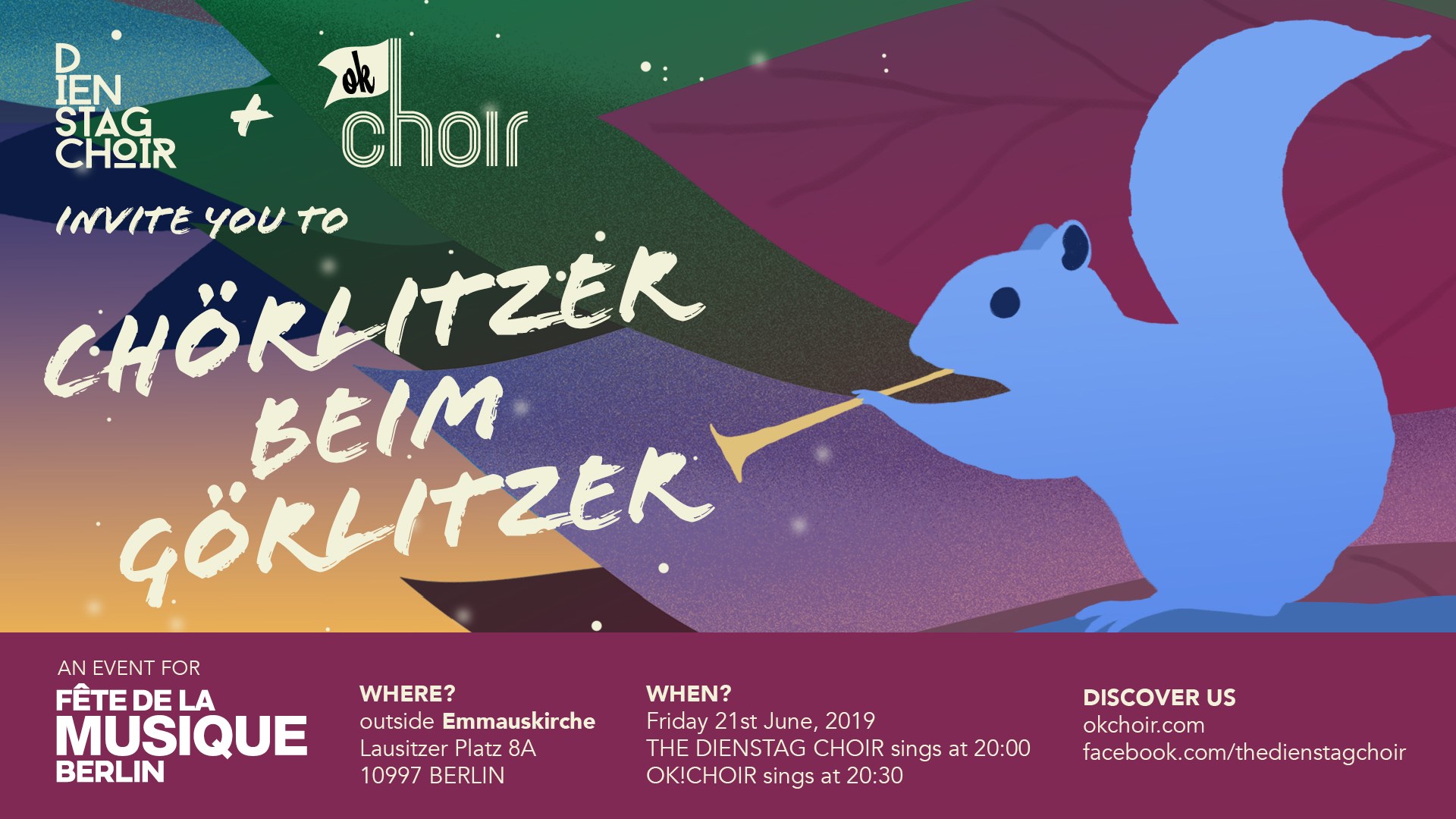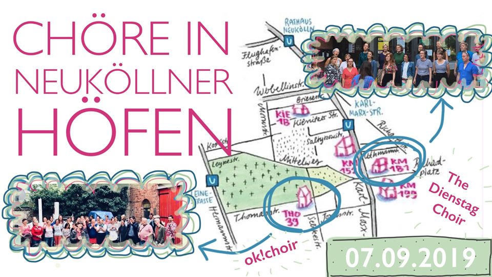 ok!choir usually rehearses in Kreuzberg most Wednesday evenings. In case we need to rehearse outdoor, we meet in Friedrichshain.
